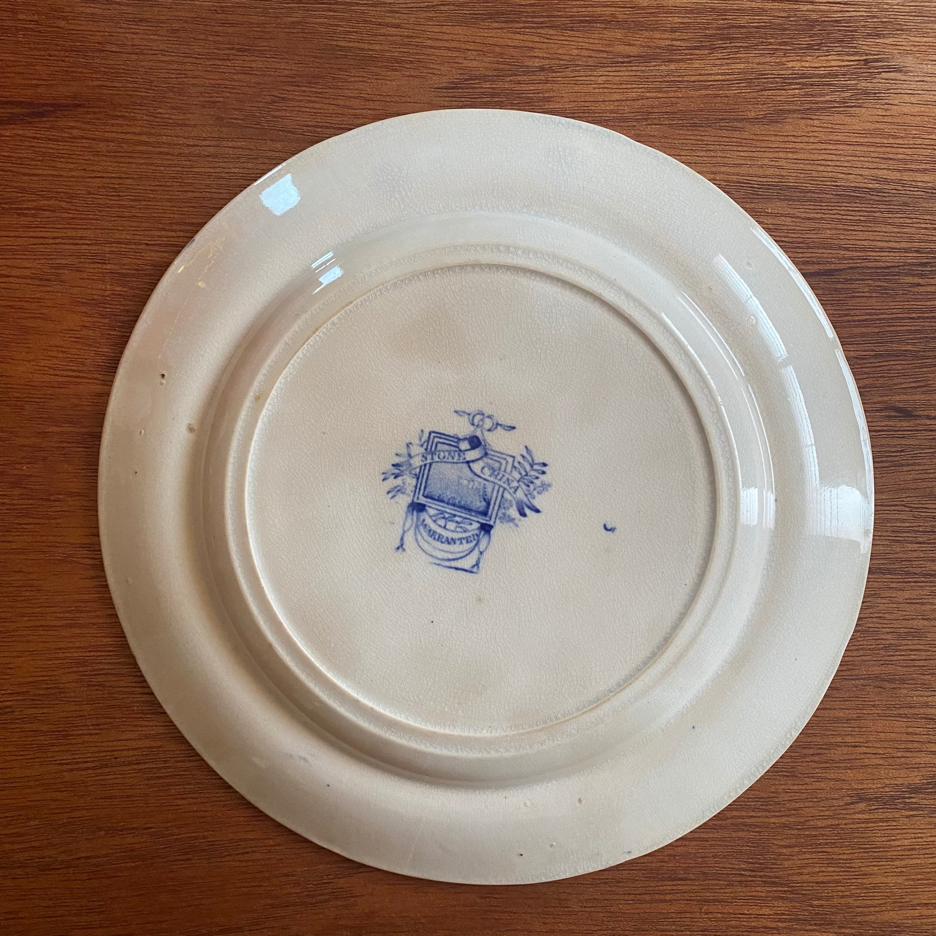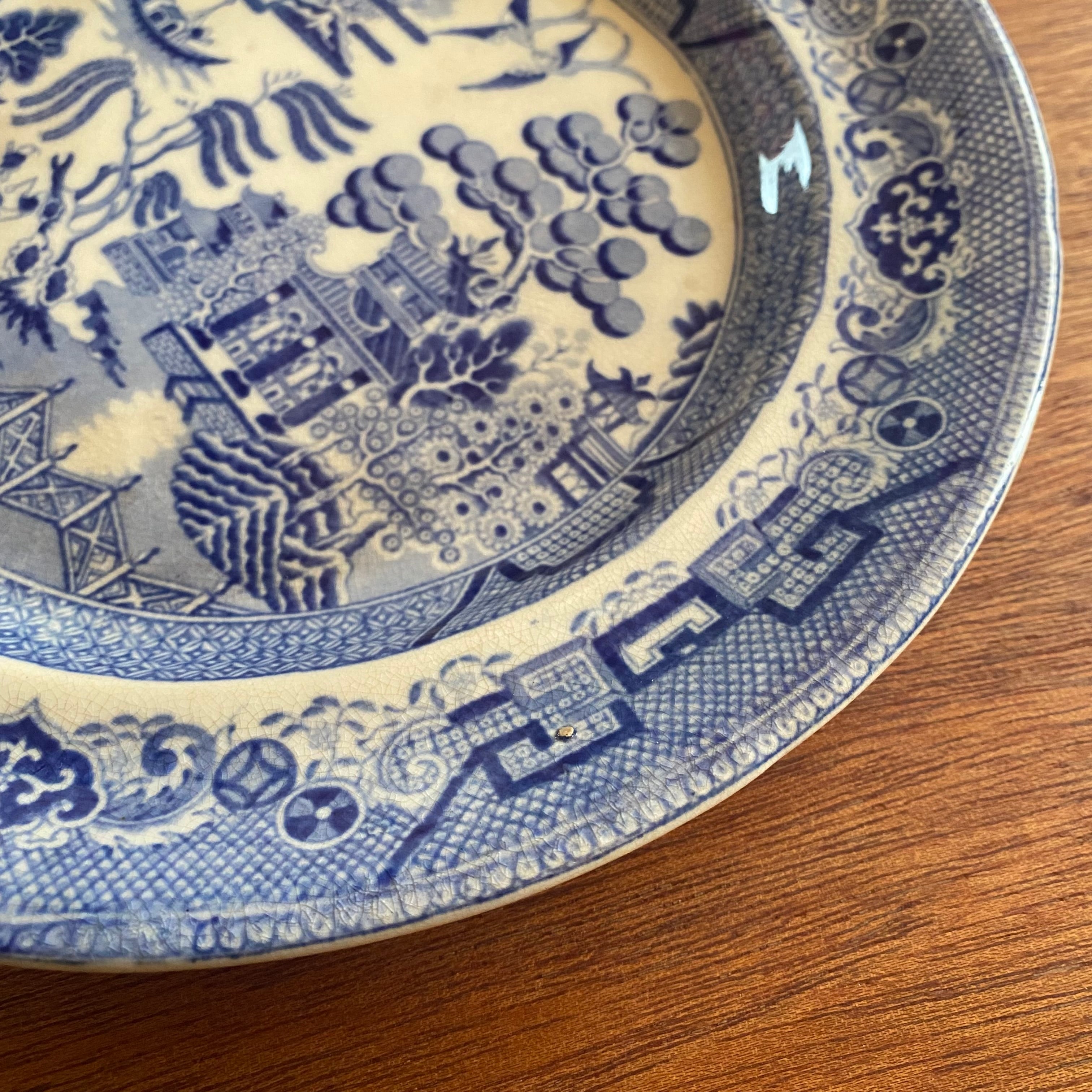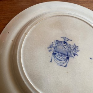 ブルーウィロー柄の1800年代のお皿です。ディナー皿サイズで存在感があります。なんだか威厳のあるお皿。こーゆーお皿があると、心強い。忙しい夕飯に買ってきたコロッケとかのせたいです。ぼってり厚みのあるお皿。