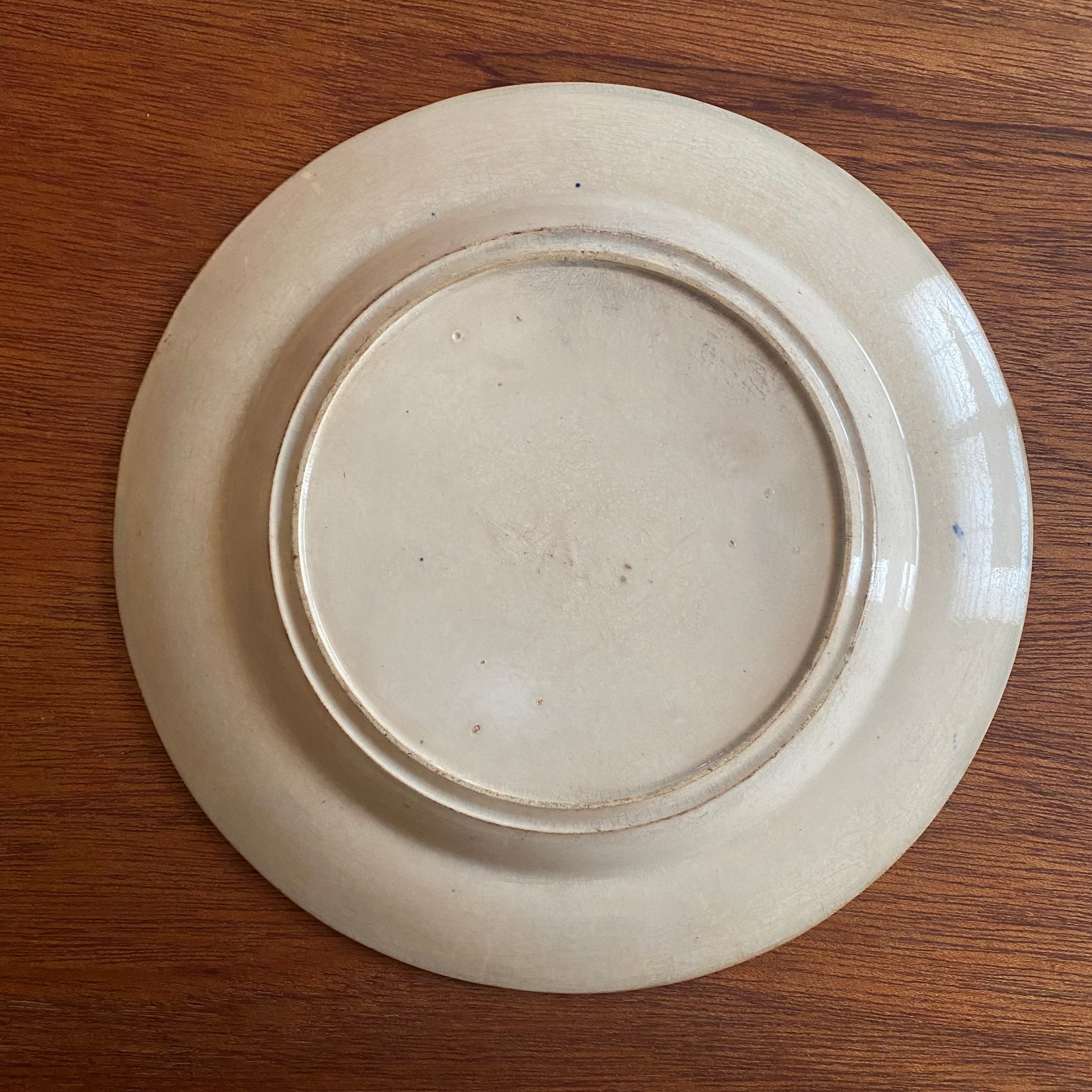 ブルーウィロー柄の1800年代のお皿です。ディナー皿ほどおおきくないので使いやすそう。時代を重ねた感じ丸出しで渋い!厚みもあります。朝のトースト、ケーキ、和食などなんでもお任せしたいお皿です